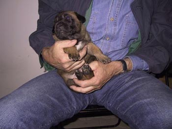 Axel im Alter von 3 Wochen auf Herrchen's Schoß