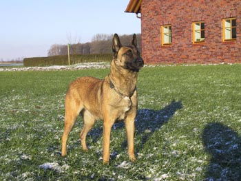 | Brando ist ein sehr leistungsstarker und wesensfester Malinois. 1999 war er Kreismeister, Landesmeister (LV Ravensberg-Lippe) und Teilnehmer der dhv-DM in Hameln. | Chessy ist eine sehr nervenfeste Malihündin. Sie hat einen