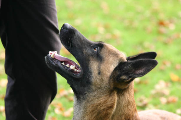 ein sehr energisches Kommando "FUß" gegeben, danach hat er sich dann