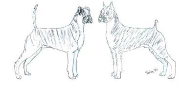 | Allgemeines Erscheinungsbild: | Der Deutsche Boxer ist mittelgroß, leicht gestreckt mit einem kraftvollen und eleganten Körper |