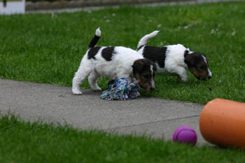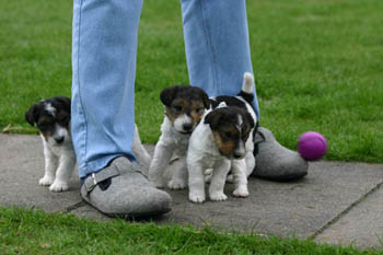 Zwei Rüden und zwei Hündinnen halten seitdem die Familie auf Trab. Das Foto entstand am 09.04.2004 - die Welpen sind dort also 4 1/2 Wochen alt und putzmunter - wie man sieht;-)