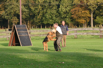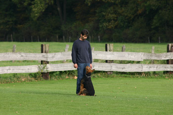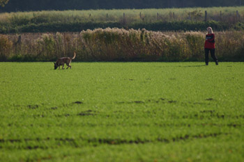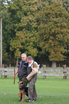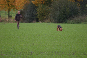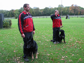 | Diese beiden hatten leider ein wenig Pech. Nachdem die Prüfung schon fast zu Ende war - Zeus musste nur noch abgerufen werden - ist Fee leider aus der Ablage aufgestanden und die beiden Hunde haben auf dem Platz gespielt. Aber wir drücken alle die Daumen, dass es beim nächsten Mal bis zum Schluss gut klappt!!! | |