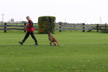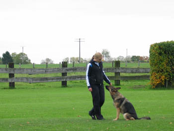 ![]() Michaela mit Rasty - auf dem Weg zur Sitz-Übung |