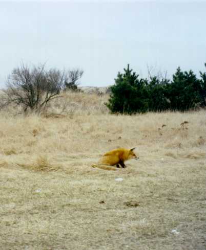 Diesen Fuchs haben wir auf Fire Island gesehen. Er saß am Straßenrand und hat irgendwas gefressen.