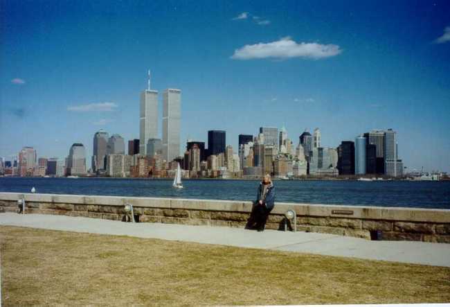 Hier könnt Ihr mich vor der Skyline sehen. Bei strahlend blauem Himmel sieht Manhattan aus der Ferne total irreal aus.