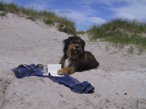 Nur als ich Frauchens Handtuch und Buch klauen wollte, wurde sie wütend. Erst macht sie ein Foto von mir und dann verscheucht sie mich von da. Ich wollte doch nur mal wissen, was an einem Buch so interessant sein soll...