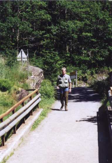Raimund auf dem Weg zum Fliegenfischen. Er hat immerhin eine große Forelle aus dem Fluß Lyngdalen gezogen.