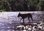 Malinois-Hünding Fenja, mein Wäller Brösel und ich - im Juli 2000. 3 Wochen